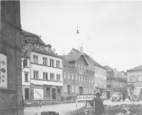 On November 10, 1938 terrible things happened in the house of Rosa Stern. In the early morning men of the SA rushed into the house and destroyed the whole furniture, all windows and doors. - It was the terrible pogrom day in Hammelburg. - Photo: Dieter Vogler, Hammelburger Album. On the left you can see the house of Emanuel Stern with destroyed windows.